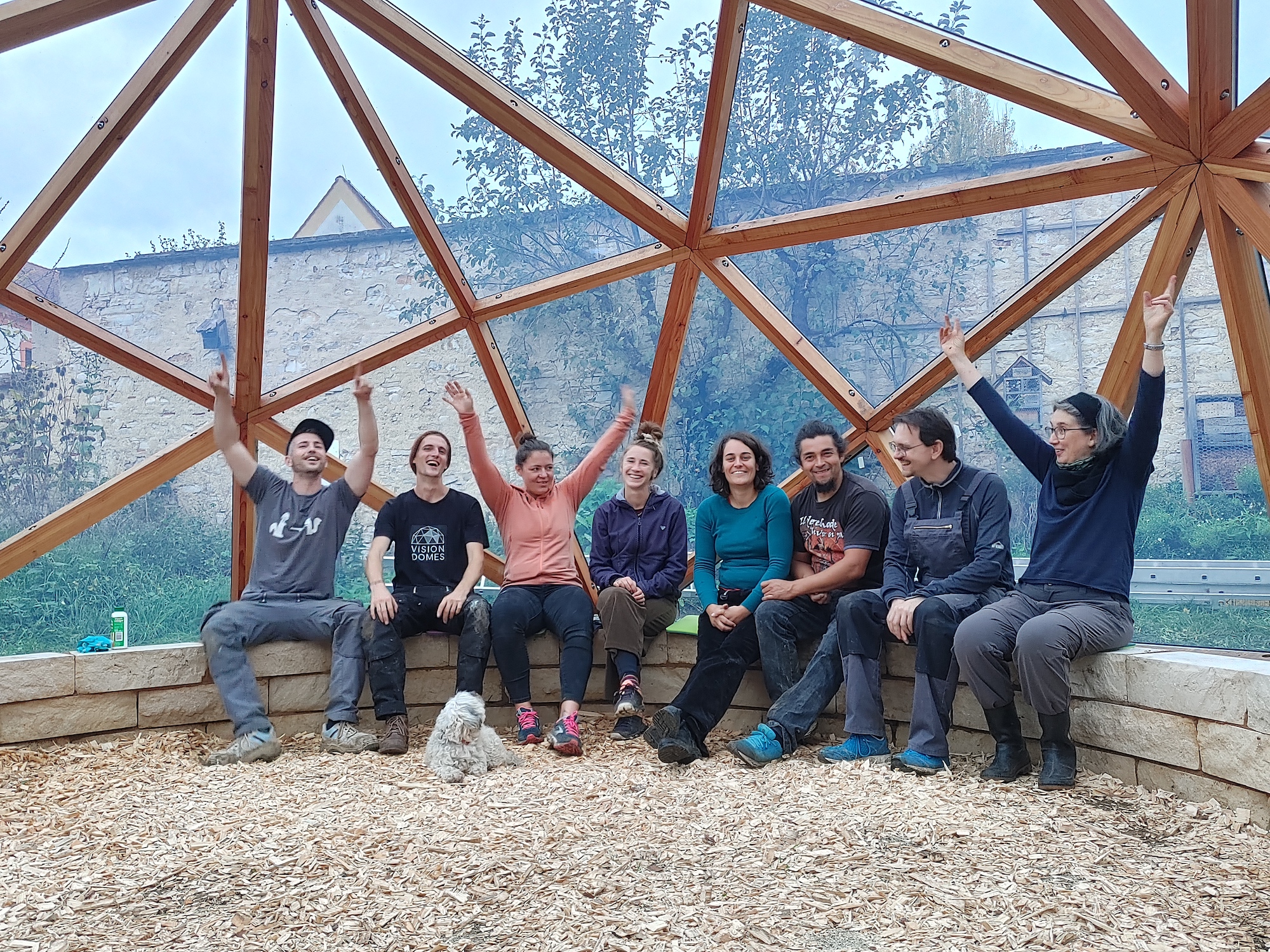 Projektkoordinatorin Dr. Johanna Umbach freut sich über die Würdigung durch den Town & Country Stiftungspreis: „Der Verein für Nachhaltigkeit e. V. bietet im Garten niedrigschwelligen Angeboten zu Nachhaltigkeit und möchte durch verschiedene Veranstaltungen für mehr Klimaschutz sensibilisieren. Dabei wollen wir verstärkt Kinder ansprechen und es ihnen ermöglichen, Natur zu erleben sowie klimaschonendes und ökologisches Verhalten spielerisch zu erlernen. Die Lehrkräfte hatten bisher aber keine Planungssicherheit bei schlechtem Wetter – ein großes Hindernis. Dank der Unterstützung der Town & Country Stiftung, der Deutschen Postcode Lotterie und vieler anderer Partner war es dieses Jahr möglich, einen Geo-Dome aus Lärchenholz und Spezialfolie als Gewächshaus und Unterschlupf für Regentage zu bauen. Zur Umsetzung haben wir mit dem Team der Firma Vision-Domes zusammengearbeitet, die heute auch hier in Erfurt mit dabei sind, aber auch Schüler:innen des Berufsvorbereitungsjahres und der Montessori-Schule Eichstätt haben uns tatkräftig beim Aufbau unterstützt. Der Geo-Dome wird bereits von vielen Gruppen genutzt.“