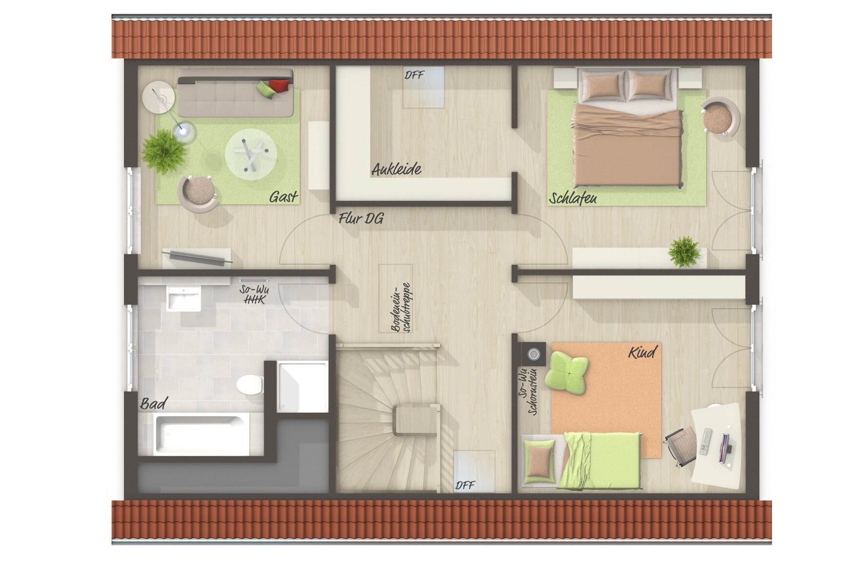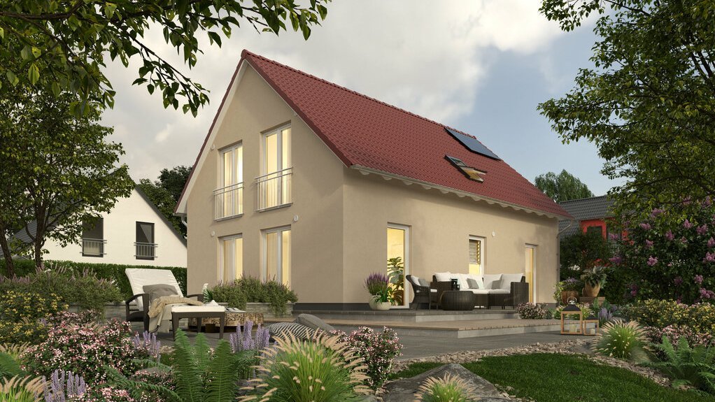 Mit dem Haus des Monats können Sie sich über das beliebte Satteldach, eine großzügige Raumgestaltung und einen flexiblen Grundriss freuen. Unser Bodensee 129 lädt Familien auf rund 128 Quadratmetern zum Wohlfühlen ein.