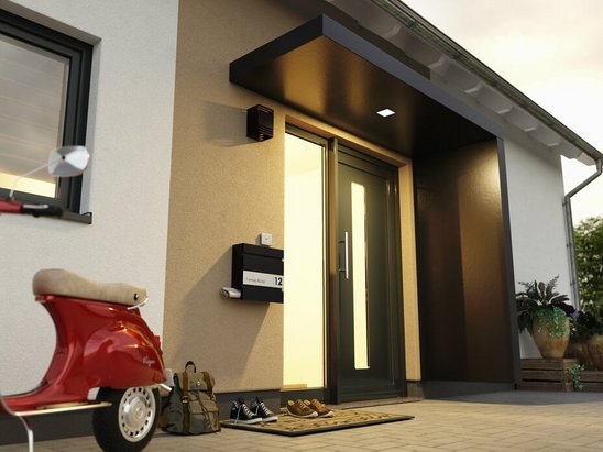 Eine weitere Möglichkeit stellt das Vordach dar, dass dem Haus einen ganz besonderen Hauseingang verleiht und Sie vor Regen, Schnee, Frost oder starker Sonneneinstrahlung schützt.