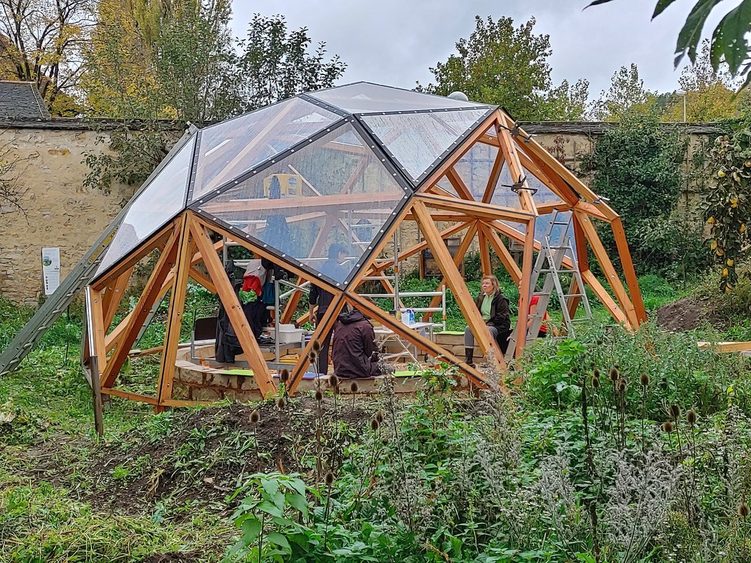 Projektkoordinatorin Dr. Johanna Umbach freut sich über die Würdigung durch den Town & Country Stiftungspreis: „Der Verein für Nachhaltigkeit e. V. bietet im Garten niedrigschwelligen Angeboten zu Nachhaltigkeit und möchte durch verschiedene Veranstaltungen für mehr Klimaschutz sensibilisieren. Dabei wollen wir verstärkt Kinder ansprechen und es ihnen ermöglichen, Natur zu erleben sowie klimaschonendes und ökologisches Verhalten spielerisch zu erlernen. Die Lehrkräfte hatten bisher aber keine Planungssicherheit bei schlechtem Wetter – ein großes Hindernis. Dank der Unterstützung der Town & Country Stiftung, der Deutschen Postcode Lotterie und vieler anderer Partner war es dieses Jahr möglich, einen Geo-Dome aus Lärchenholz und Spezialfolie als Gewächshaus und Unterschlupf für Regentage zu bauen. Zur Umsetzung haben wir mit dem Team der Firma Vision-Domes zusammengearbeitet, die heute auch hier in Erfurt mit dabei sind, aber auch Schüler:innen des Berufsvorbereitungsjahres und der Montessori-Schule Eichstätt haben uns tatkräftig beim Aufbau unterstützt. Der Geo-Dome wird bereits von vielen Gruppen genutzt.“