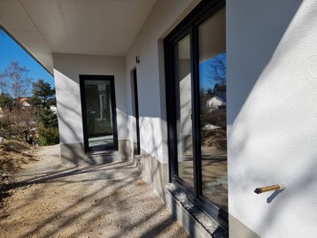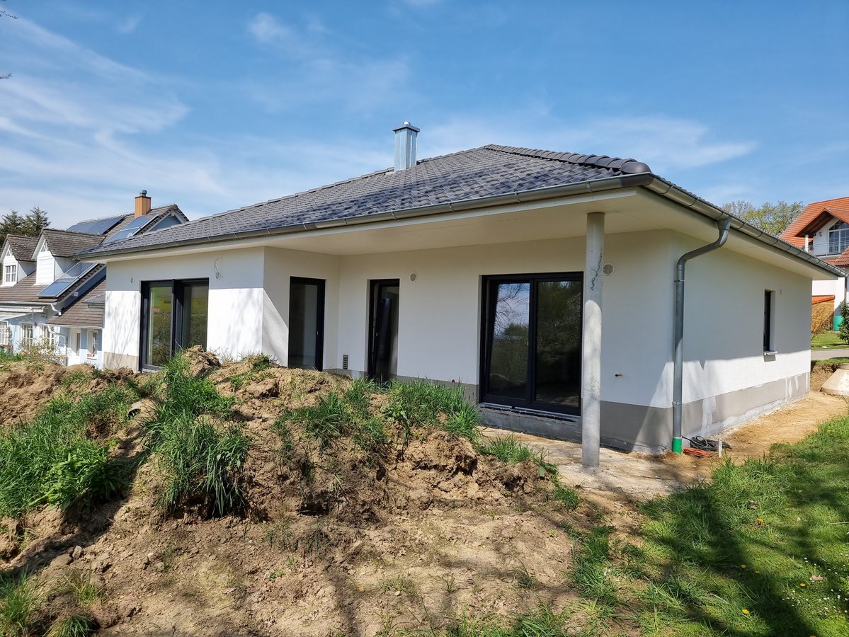 Zusätzlich bietet Ihnen der Bungalow 128 ein geräumiges Schlaf- und Kinderzimmer, ein großes Bad und eine weitläufige Küche mit praktischem Abstellraum. Das traumhafte Wohnzimmer mit seinen großen Fenstern ist der perfekte Ort zum Entspannen, bietet freien Blick in Ihren Garten und mit wenigen Schritten sind Sie auf Ihrer Terrasse im Grünen.