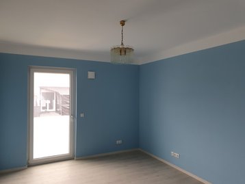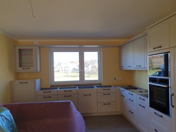 In der geräumigen Wohnküche ist genug Platz zum Essen für die ganze Familie. Der Eingangsbereich des Hauses mit Garderobe ist großzügig geplant.