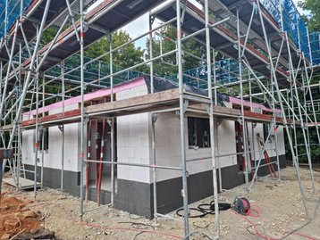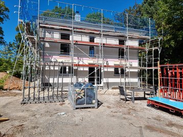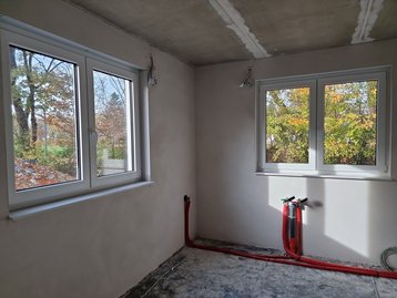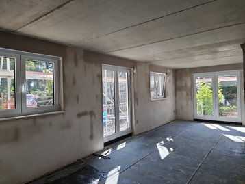 Auch das Obergeschoss zeigt sich im gradlinigen Baustil des Hauses. Hier finden Sie drei Zimmer, die Sie nach Ihren Vorstellungen als Schlaf-, Kinder- oder Gästezimmer nutzen können. Große Fenster lassen auch hier viel Tageslicht hineinströmen. Die Ankleide im Schlafzimmer bietet viel Stauraum.