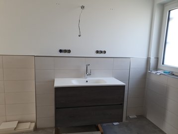 Über die offene Treppe gelangen Sie ins Obergeschoss, in dem drei geräumige Zimmer auf Sie warten. Im Badezimmer können Sie sich Ihre kleine Wellness-Oase einrichten.