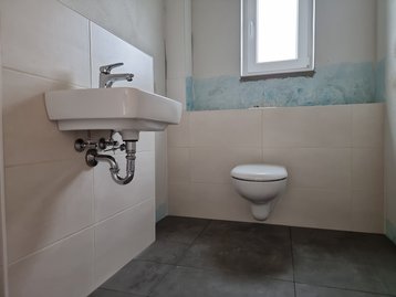 Über die offene Treppe gelangen Sie ins Obergeschoss, in dem drei geräumige Zimmer auf Sie warten. Im Badezimmer können Sie sich Ihre kleine Wellness-Oase einrichten.