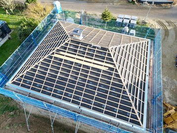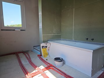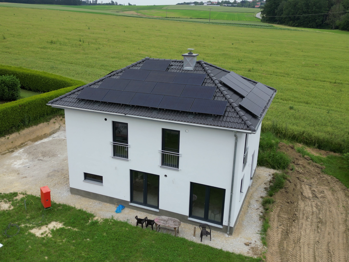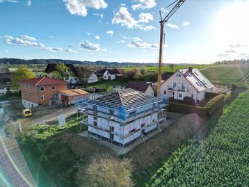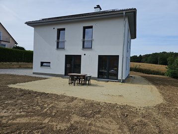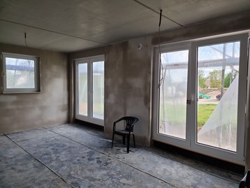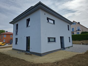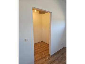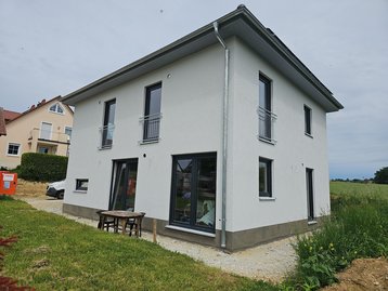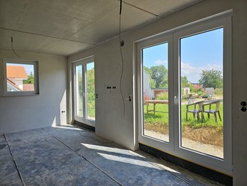 Auch das Obergeschoss zeigt sich im gradlinigen Baustil des Hauses. Hier finden Sie drei Zimmer, die Sie nach Ihren Vorstellungen als Schlaf-, Kinder- oder Gästezimmer nutzen können. Große Fenster lassen auch hier viel Tageslicht hineinströmen. Die Ankleide im Schlafzimmer bietet viel Stauraum.