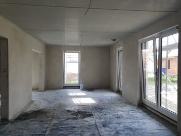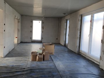 Auch das Obergeschoss zeigt sich im gradlinigen Baustil des Hauses. Hier finden Sie drei Zimmer, die Sie nach Ihren Vorstellungen als Schlaf-, Kinder- oder Gästezimmer nutzen können. Große Fenster lassen auch hier viel Tageslicht hineinströmen. Die Ankleide im Schlafzimmer bietet viel Stauraum.